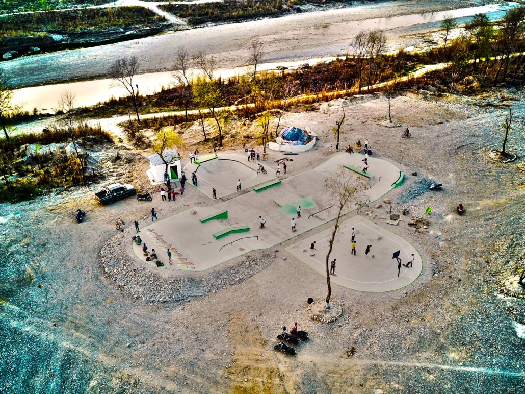 In Butwal entstand ein Skatepark, der weit mehr ist als nur eine Sportanlage. Gestaltet als Abstraktion des skate-aid international e.V.-Logos, realisierten wir die Anlage gemeinsam mit der lokalen Organisation Yuwa for Change.