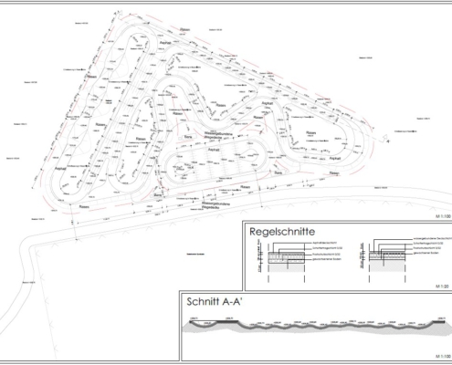 Individuelle Entwicklung der Streckenführung mit optimalem Fahrfluss, hoher Sicherheit und abgestuften Schwierigkeitsgraden